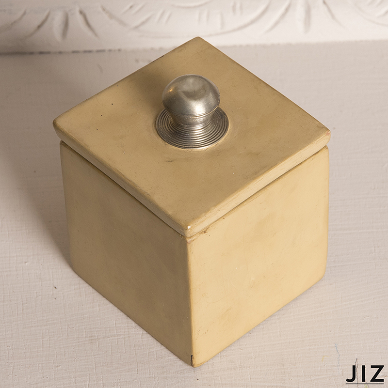 Cajita de arcilla de estilo árabe con remate metálico traída de la Medina de Marrakech en Marruecos.